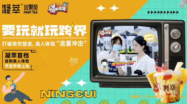 凝萃水果茶的出现,不仅打破水果茶圈层,通过萃取技术在茶汤里加入VC物质丰富的野生葡萄籽,更是大玩跨界,选择跨界影视圈,自己选题、自己拍摄、自己剪辑、自己……自主创造了茶饮界第一档美食真人秀,打破常规,突破自我!